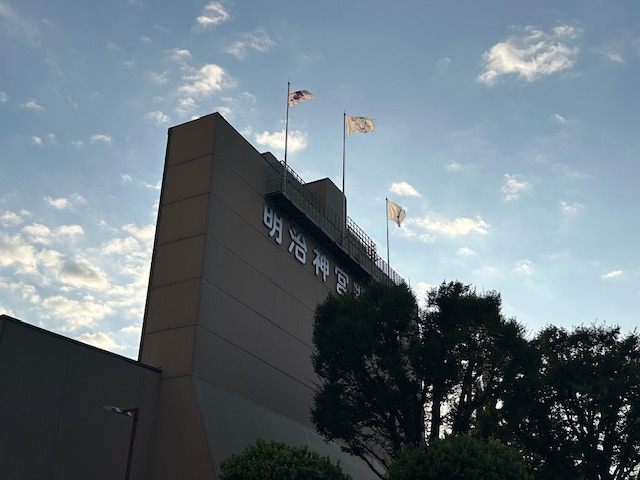 夏の締めくくりはやっぱり神宮。今年の神宮、1,2日目は雨が心配されましたが幸いこの日は晴天。