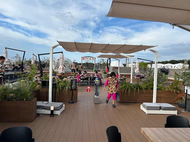 屋外には冷水プールがあって、小学生がドボンドボンと飛び込んでいました。